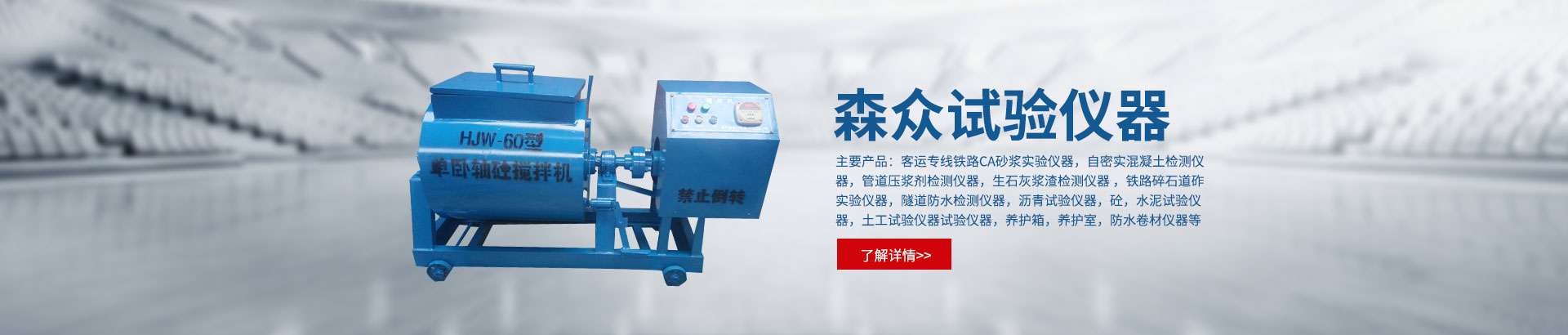 滄州森眾試驗(yàn)儀器有限公司是目前國內(nèi)生產(chǎn)公路試驗(yàn)儀器、建筑試驗(yàn)儀器的重點(diǎn)骨干企業(yè)。在國內(nèi)具有較高的度,檢測(cè)手段完善,技術(shù)力量雄厚。產(chǎn)品嚴(yán)格按照,國家標(biāo)準(zhǔn)設(shè)計(jì)生產(chǎn),多次在國家重點(diǎn)工程中標(biāo)。除配套供應(yīng)試驗(yàn)儀器設(shè)備外,我公司還承擔(dān)新建試驗(yàn)室的規(guī)劃設(shè)計(jì),設(shè)備選型,安裝調(diào)試,配件供應(yīng)與后勤保障等業(yè)務(wù)。主要產(chǎn)品:客運(yùn)專線鐵路CA砂漿實(shí)驗(yàn)儀器,自密實(shí)混凝土檢測(cè)儀器,管道壓漿劑檢測(cè)儀器,生石灰漿渣檢測(cè)儀器,鐵路碎石...